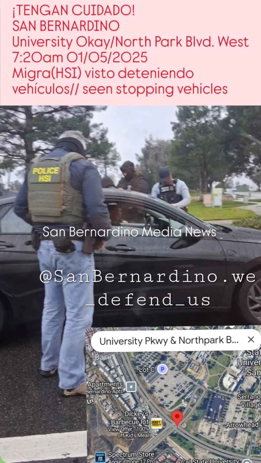 at least 4 hsi agents pulled over 1 car at 7:20am in san bernardino .. more