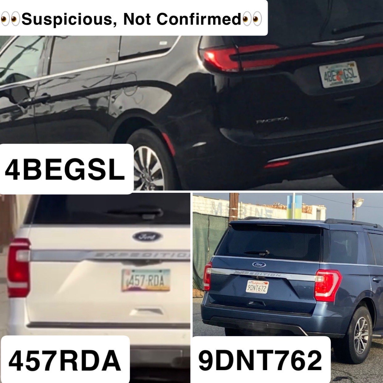multiple new suv’s and trucks followed behind a large white van. kentucky license plates non-tinted windows drivers lo .. more