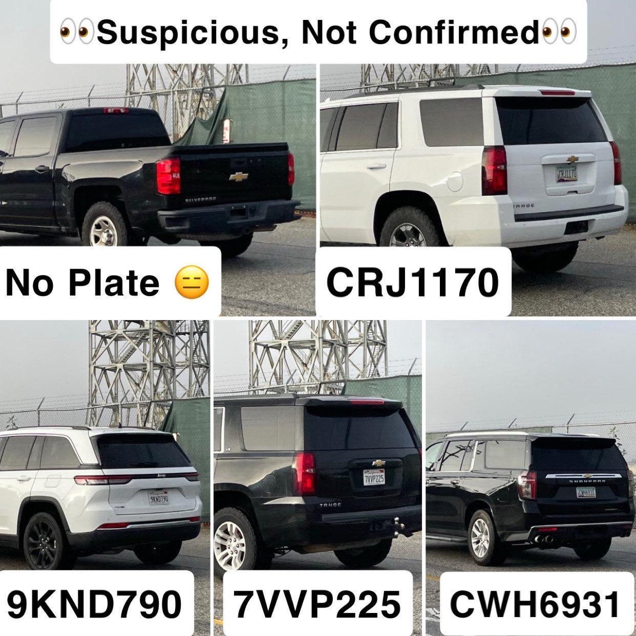 3 unmarked white pickup trucks with texas plates on the freeway heading towards palmdale some wearing masks. .. more